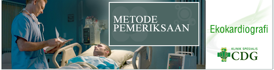 Pasien berbaring di ranjang pemeriksaan, alat USG digerakkan di dada kiri yang diberikan gel sebagai pelicin dan penghantar rambatan suara. Merupakan salah satu pemeriksaan non invasif seperti USG